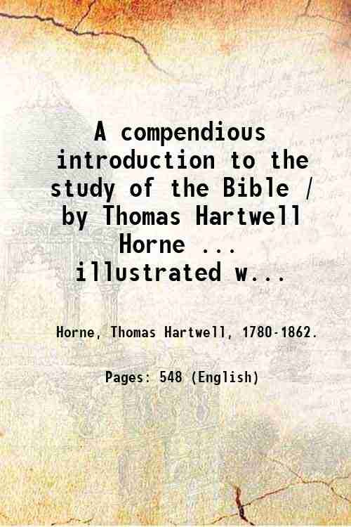 A compendious introduction to the study of the Bible / by Thomas Hartwell Horne . illustrated with maps and other engravings ; being an analysis of "An introduction to the critical study and knowledge of the Holy Scriptures," in four volumes, by the same author. 1827