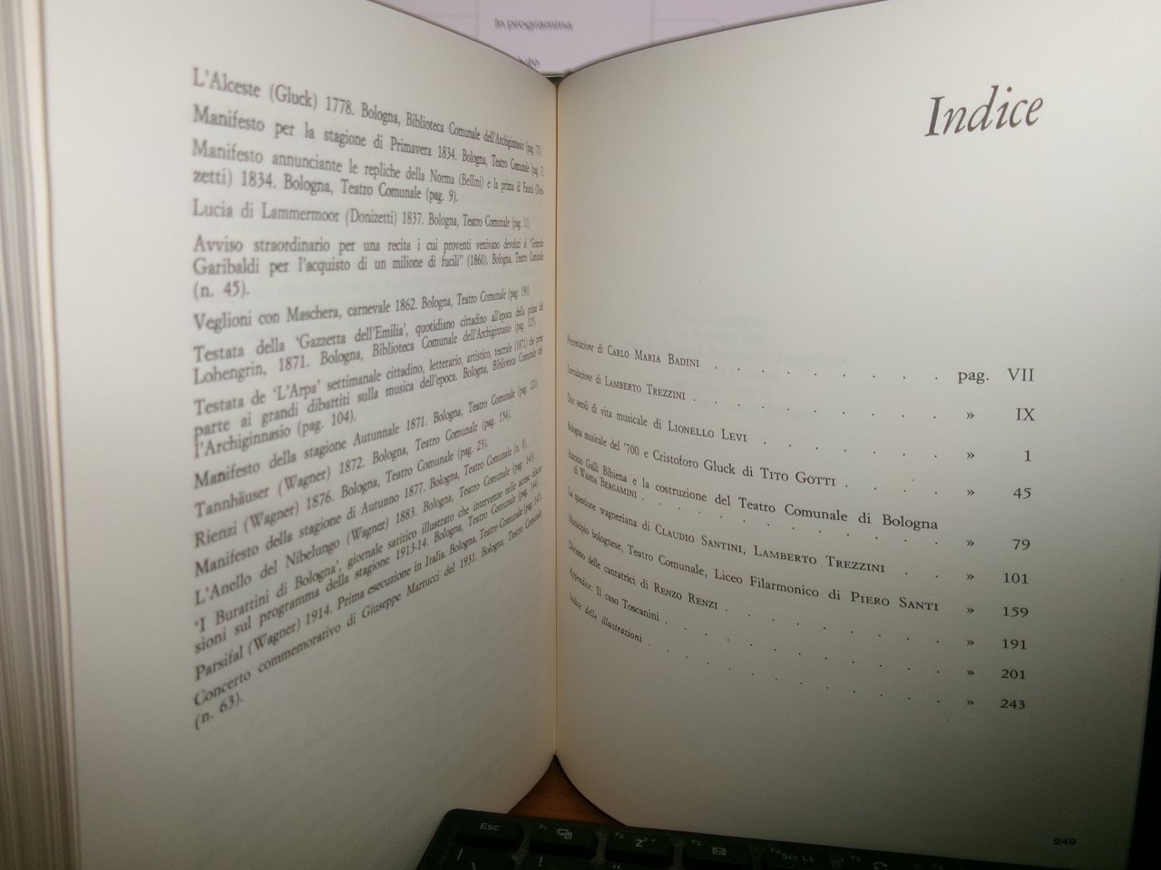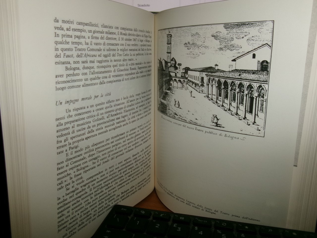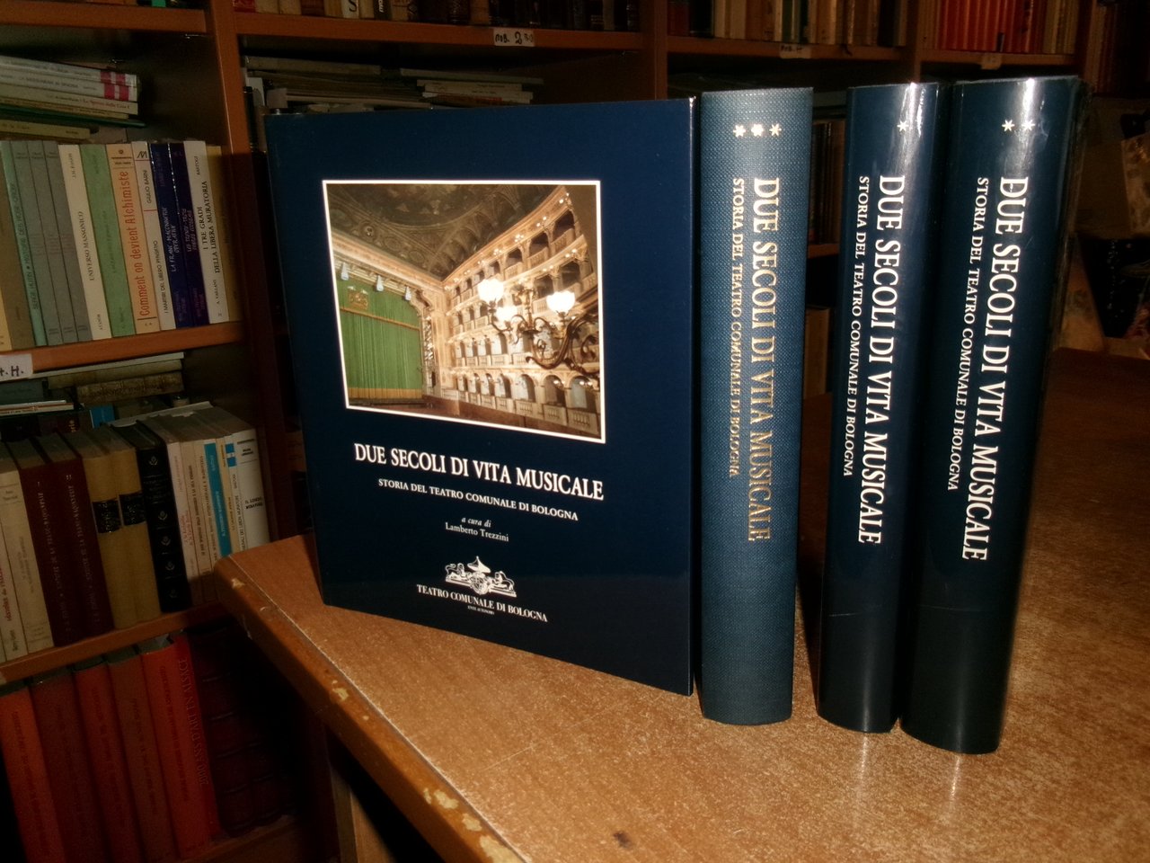 a cura di Lamberto Trezzini. DUE SECOLI DI VITA MUSICALE storia del Teatro Comunale di Bologna. Bologna, Nuova Alfa Editoriale, 1987. 3 volumi con cofanetto in-8°, tela edit. con titoli in oro sui dorsi e sovracopertine ill. a col. xvi, 249 pp. con numerose illustrazioni in nero e in bicromia n.t.; xix, 363 pp.; xiii, 385 pp. Libri come nuovi. Cofanetto con lievi segni del tempo. Neg. in alto sopra 3 in pluriball