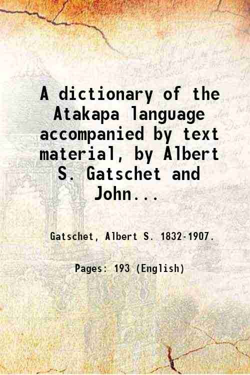A dictionary of the Atakapa language accompanied by text material, by Albert S. Gatschet and John R. Swanton. 1932