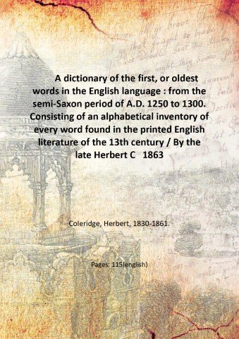 A dictionary of the first, or oldest words in the English language : from the semi-Saxon period of A.D. 1250 to 1300. Consisting of an alphabetical inventory of every word found in the printed English literature of the 13th century / By the late Herbert Coleridge. 1863