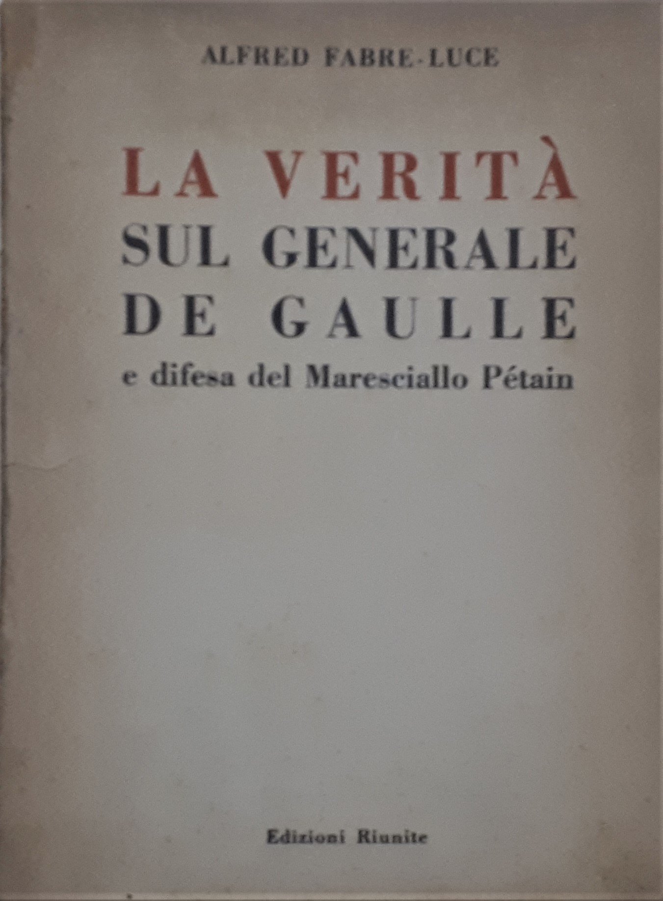 A. Fabre Luce - La verità sul Generale De Gaulle e difesa del Maresciallo Pétain - ed. 1946 Testo in lingua italiana, Pag. 119 Copertina morbida Condizioni molto buone