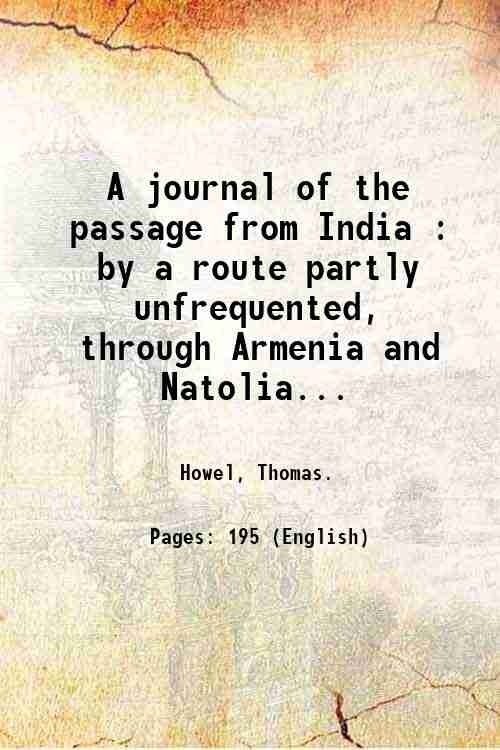 A journal of the passage from India : by a route partly unfrequented, through Armenia and Natolia, or Asia Minor; Tt which are added, observations and Instructions, for the use of those who intend to travel, either to or from India, by that route / By Thomas Howel. 1791