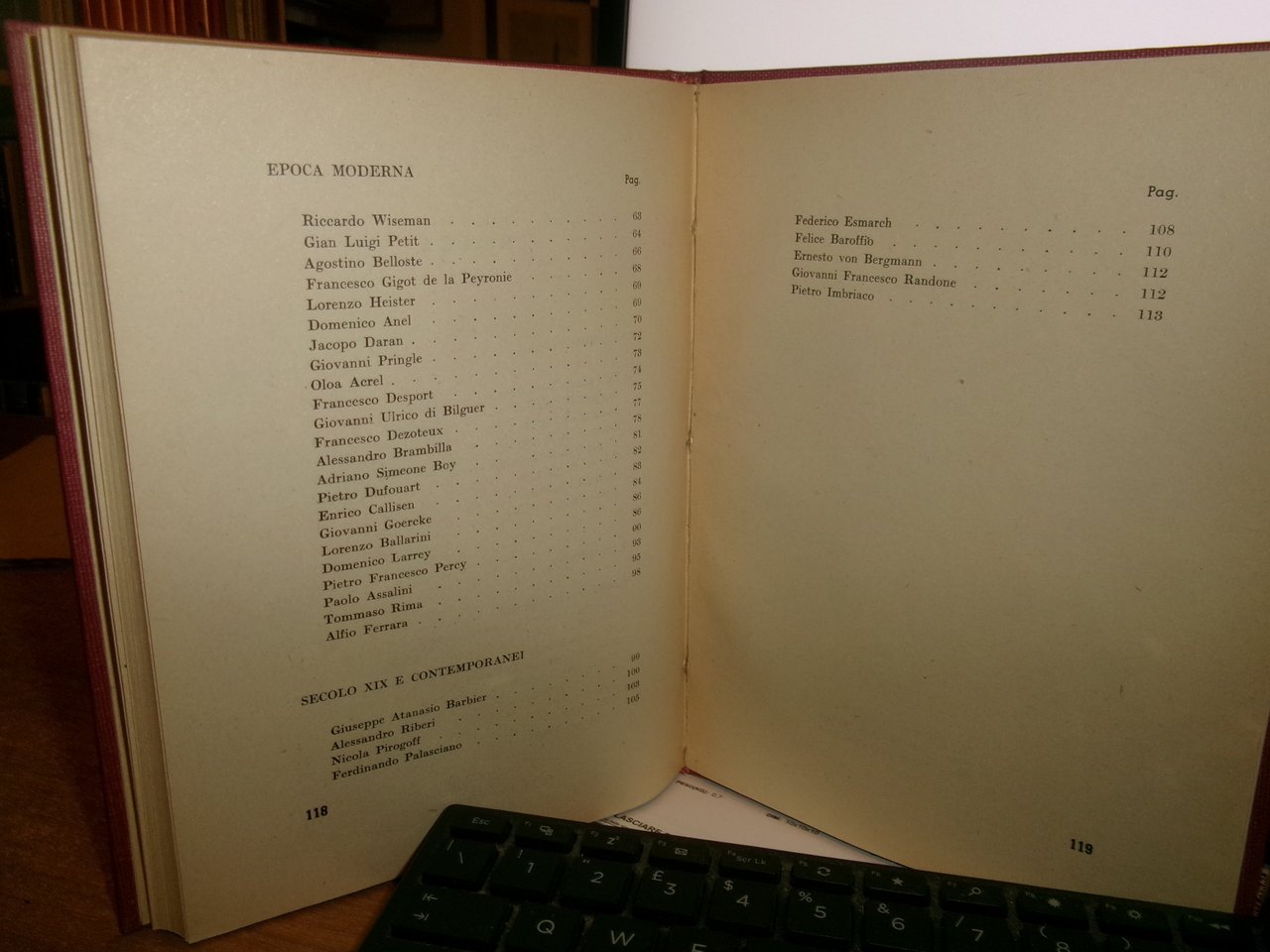 Adalberto,. PAZZINI. Chirurghi Militari sec. XII-XIX Omaggio ai partecipanti al congresso di chirurgia di guerra. Roma, XXIV-XXVI maggio MCMXLII-XXE.F. Edito dal giornale di medicina militare. In-8°, tela rossa con titolo in oro entro tassello al dorso. 119 pp. con numerose illustrazioni in nero n.t. Ottimo esemplare. Raro. Neg. mob. rosso.