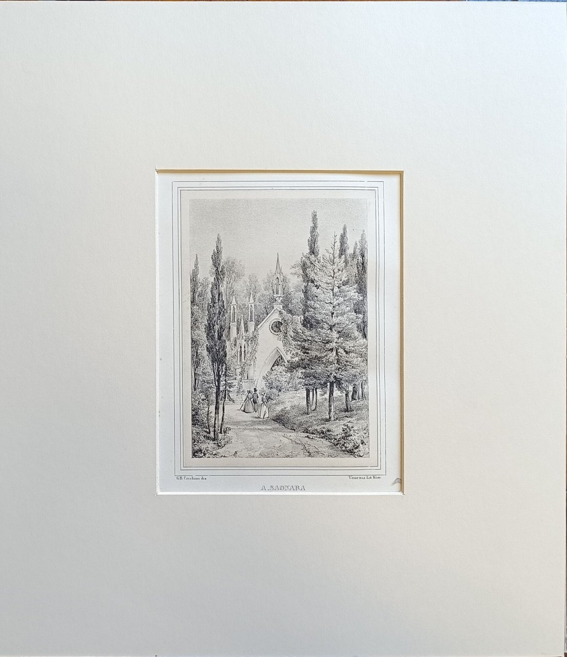 litografia foglio cm. 14 x 22 - inciso cm. 11 x 15 Buono (Good) Buon es., in passpartout.