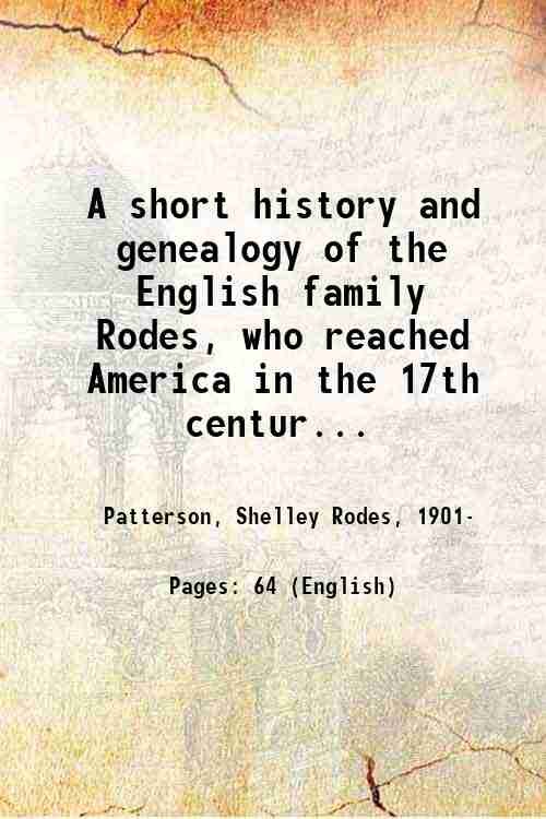 A short history and genealogy of the English family Rodes, who reached America in the 17th century and first settled in New Kent County, Virginia, by Shelley Rodes Patterson. 1929