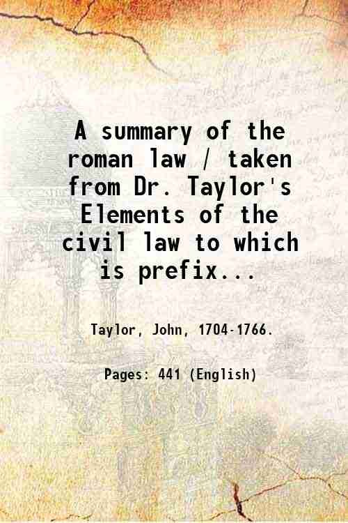 A summary of the roman law / taken from Dr. Taylor's Elements of the civil law to which is prefixed A dissertation on obligation. 1772