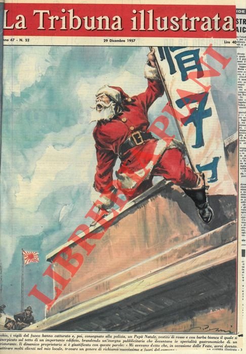 Roma, 1957 dicembre 29, copertina illustrata a colori in fascicolo originale completo di pp. 32 de "La Tribuna illustrata" .