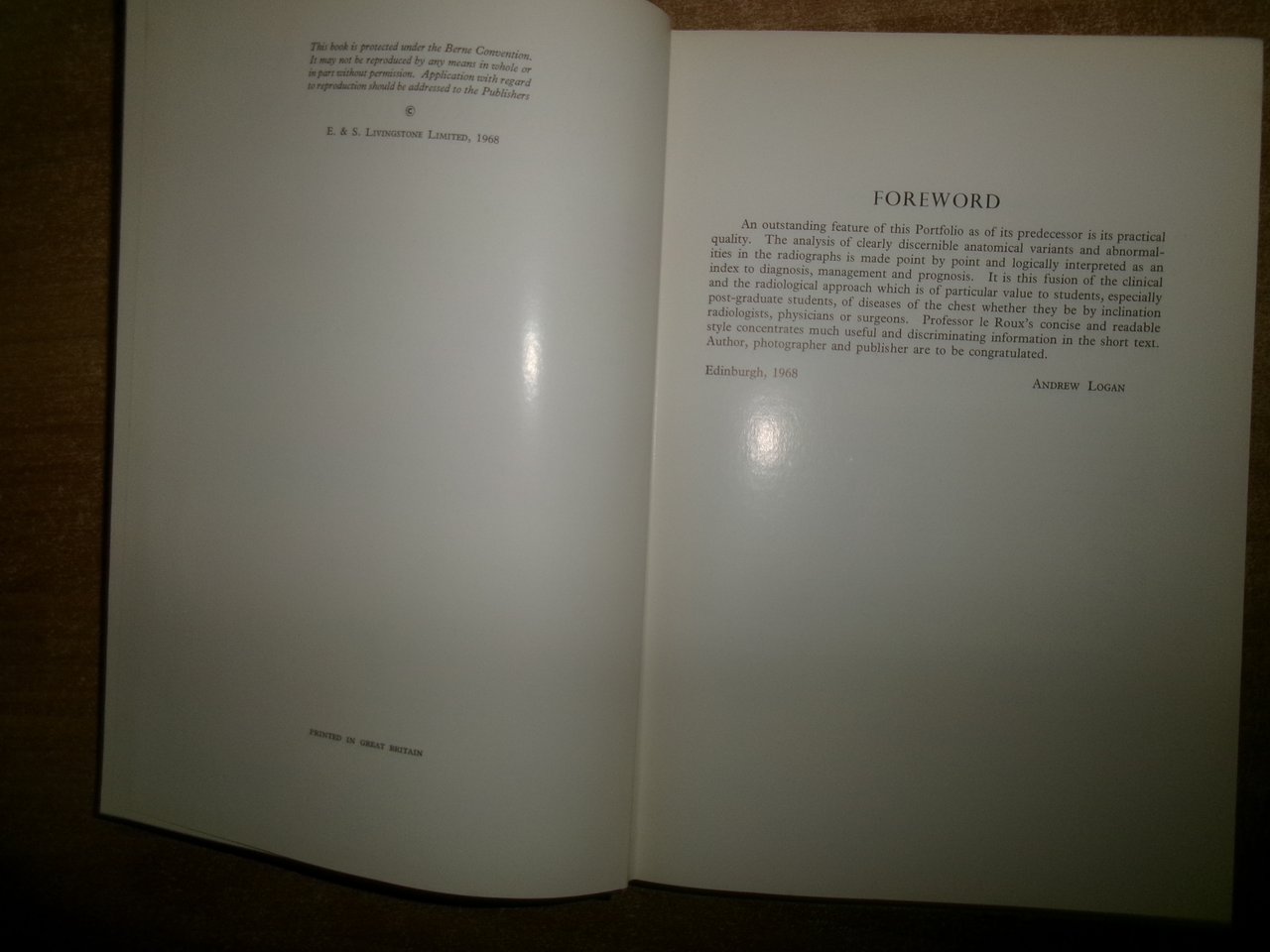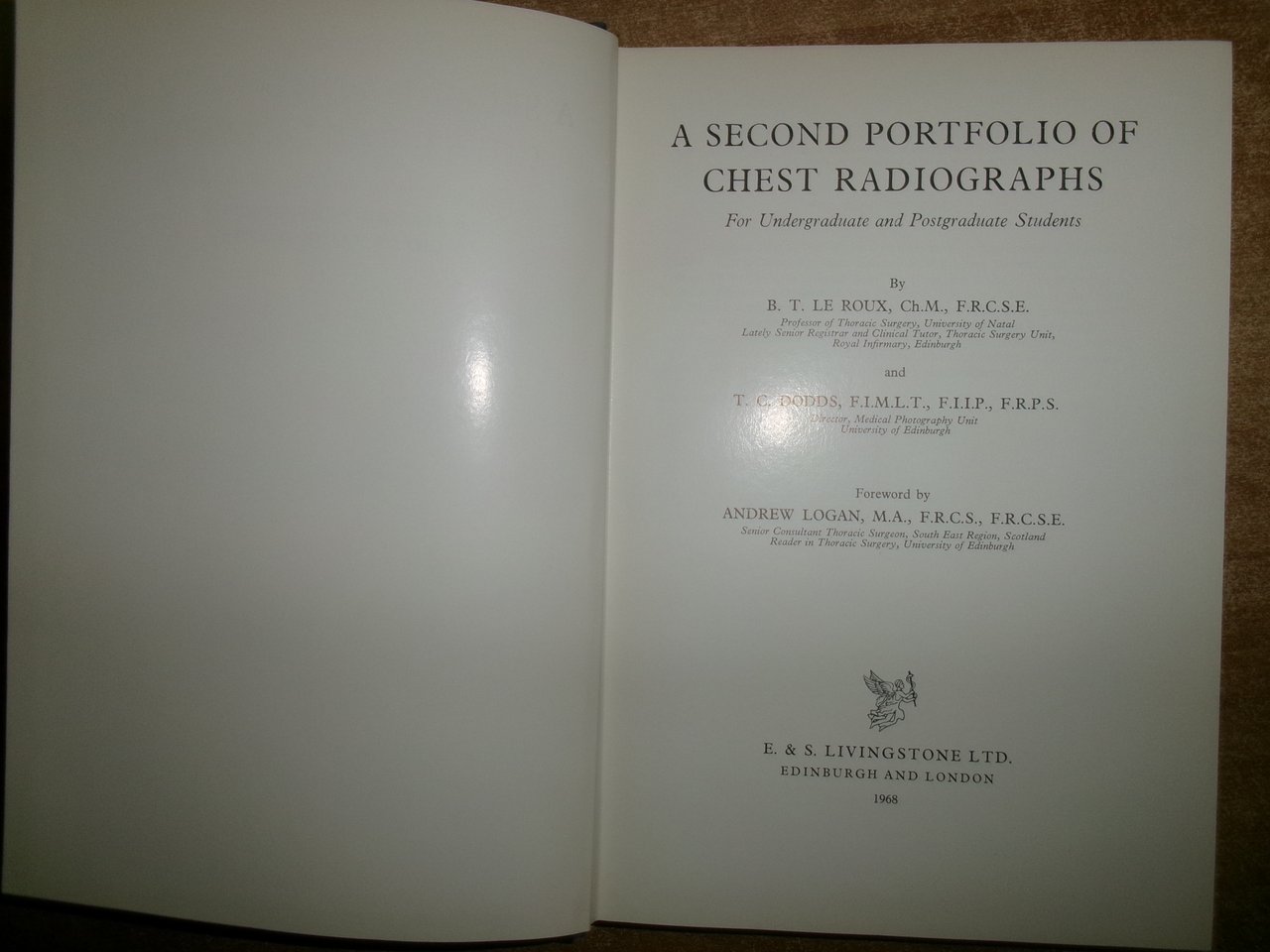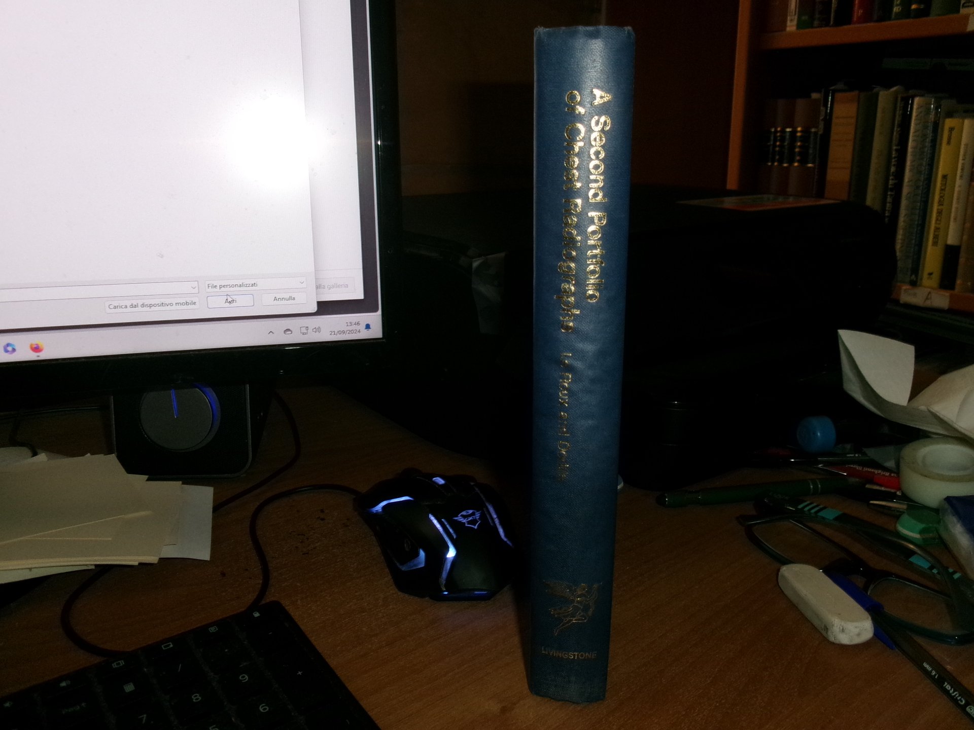 AA. VV. A Second Portfolio of Chest Radiographs for Undergraduate and Postgraduate Students. Edinburgh and London, E. & S. Livingstone, 1968. In-8°, tela edit. bleu. con titolo in oro al dorso. 444 pp. con numerose figure in nero n.t. Ottimo stato con testo in inglese. Uff. salon. sporta 8