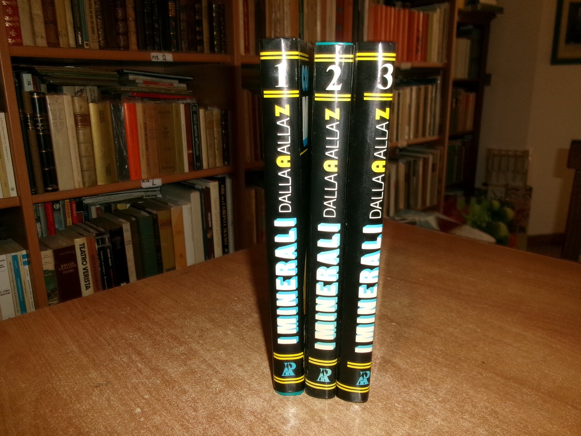 AA. VV. COLLEZIONA i tuoi Minerali. Milano, Alberto Peruzzo Editore, 1983. 3 volumi, in-8° grande, similpelle edit. con impressioni a secco sui piani, titoli in oro ai dorsi e sovracopertine ill. a col. con risvolti per complessive 839 pp. con innumerevoli illustrazioni a colori n.t. Ottimo stato. Uff. stanz. TV mob. fronte nostro.