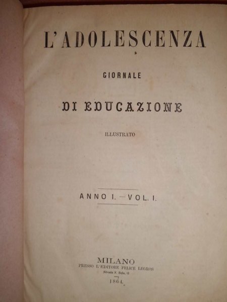 AA.VV. L' ADOLESCENZA. GIORNALE DI EDUCAZIONE ILLUSTRATO.