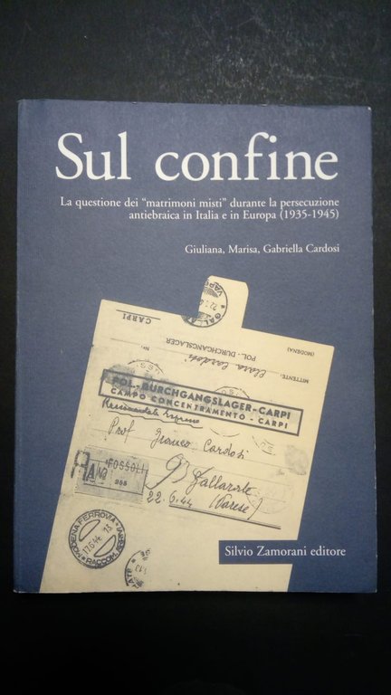 AA.VV, Sul confine. La questione dei "matrimoni misti" durante la persecuzione antiebraica in Italia e in Europa (1935-1945), Silvio Zamorani editore, 1998 - I, in-8, brossura, illustrazioni nel testo. Dedica di uno degli autori sul frontespizio e firma di appartenenza. Ottime condizioni (sporadiche sottolineature a matita)