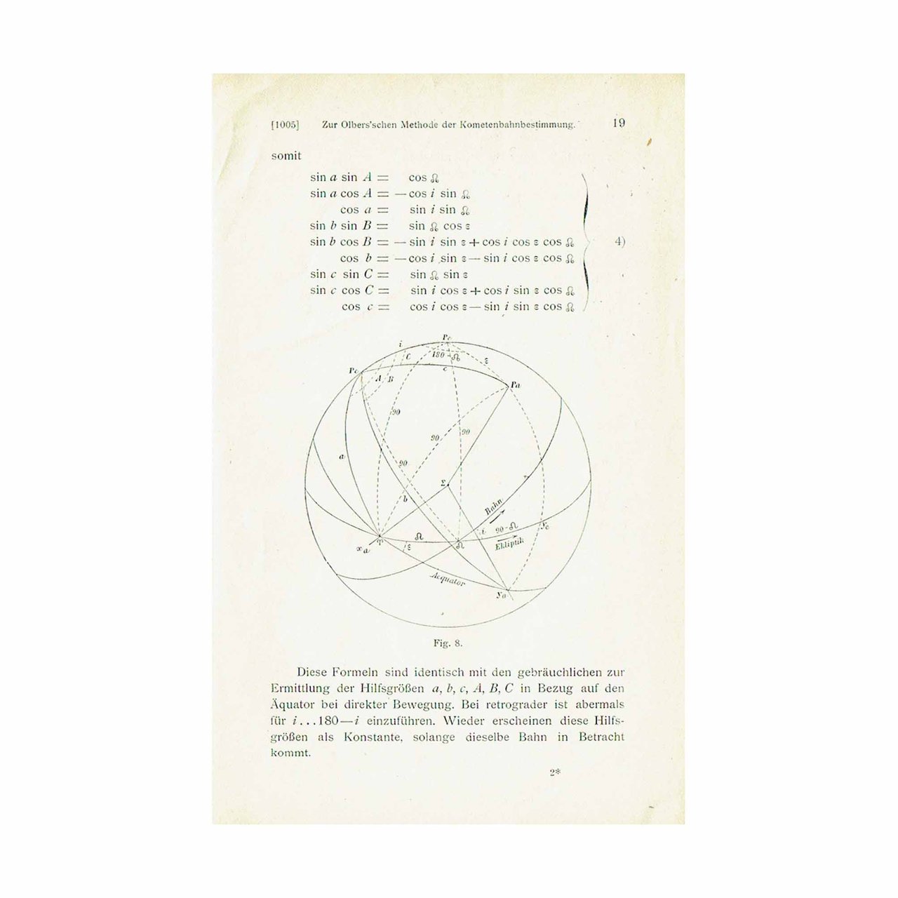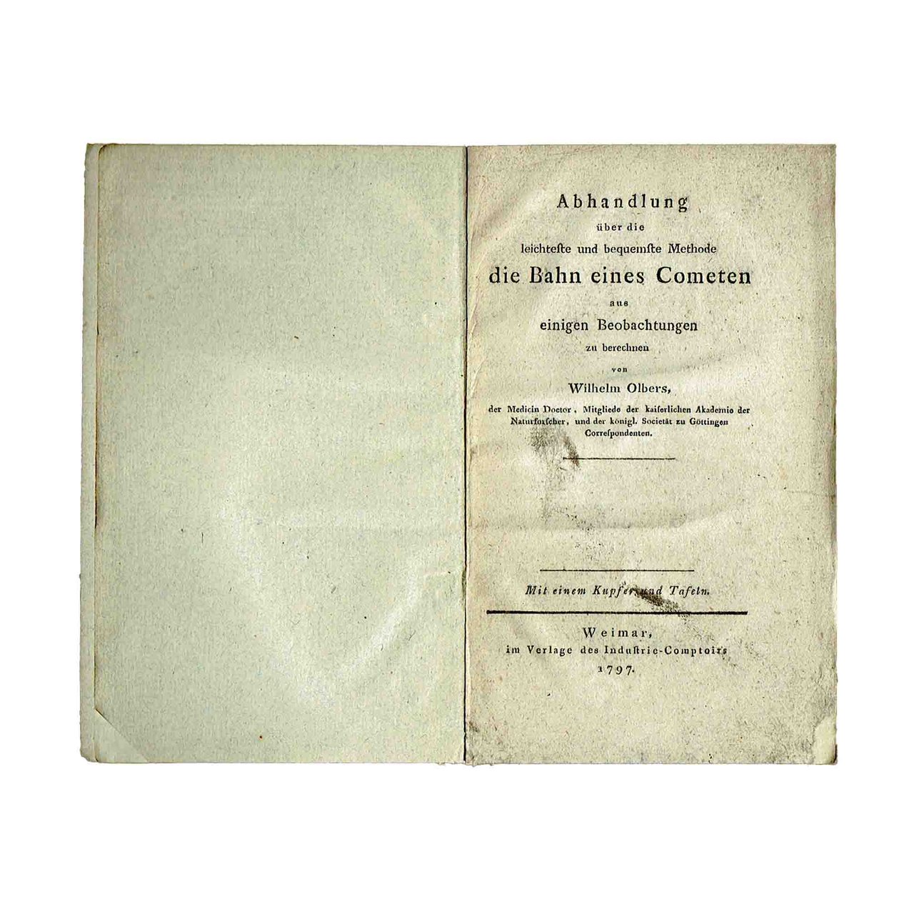 ABHANDLUNG ÜBER DIE LEICHTESTE UND BEQUEMSTE METHODE DIE BAHN EINES COMETEN AUS EINIGEN BEOBACHTUNGEN ZU BERECHNEN. [Treatise on the easiest and most convenient method to calculate the path of a comet based on some observations.] With 1 engraved folding plate and numerous tables.