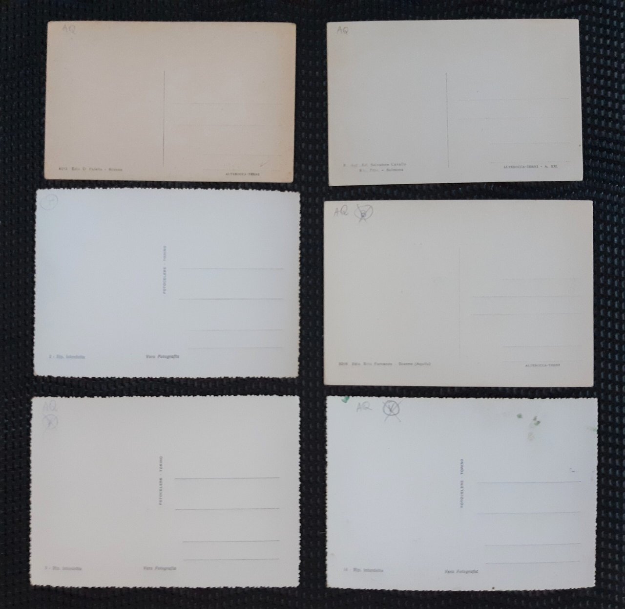 6 cartoline Costumi d'Abruzzo grandi lucide con margini ondulati, una lieve sporcizia al margine inferiore su una cartolina;