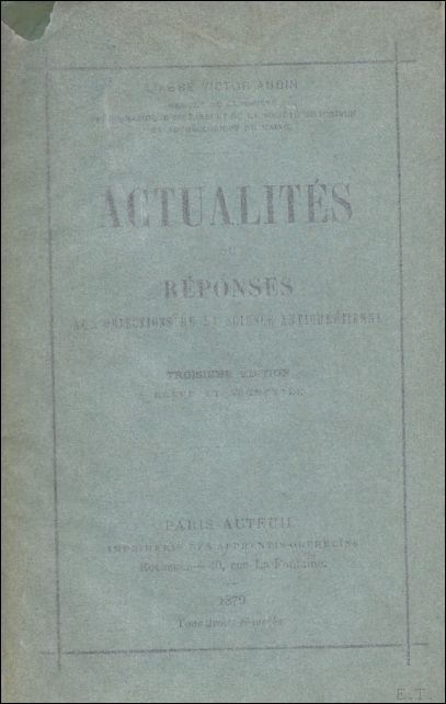 ACTUALITES OU REPONSES AUX OBJECTIONS DE LA SCIENCE ANTICHRETIENNE. | Rare and modern books | Aubin, Victor.