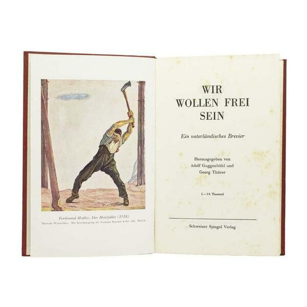 Autore: Adolf Guggenbuhl und Georg Thurer Titolo: Wir Wollen Frei Sein Sottotitolo: ein vaterlandisches brevier Edizione: Schweizer Spiegel Verlag 1939 Dimensioni: 12,5 x 19 cm c.a. Pagine: 64 Copertina: Rigida Condizioni: Buone come da foto
