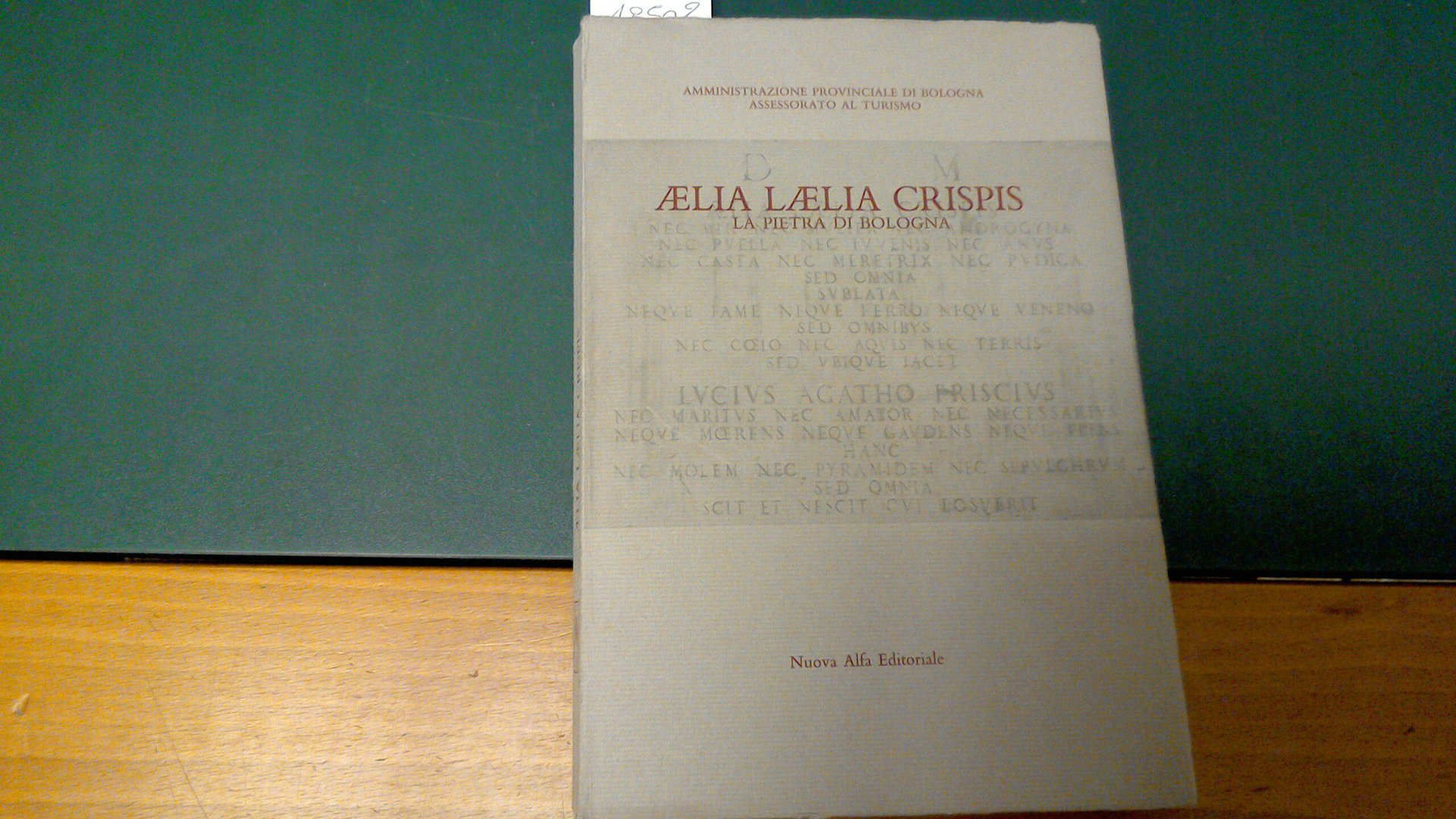 Raccolta di saggi dedicati ad una misteriosa iscrizione epigrafica presente nel museo civico di Bologna, probabilmente di epoca cinquecentesca. Si tratta di una falsa iscrizione funeraria dedicata da un uomo che si nascose dietro allo pseudonimo di Lucius Agatho Priscius a una misteriosa donna chiamata Aelia Laelia Crispis.