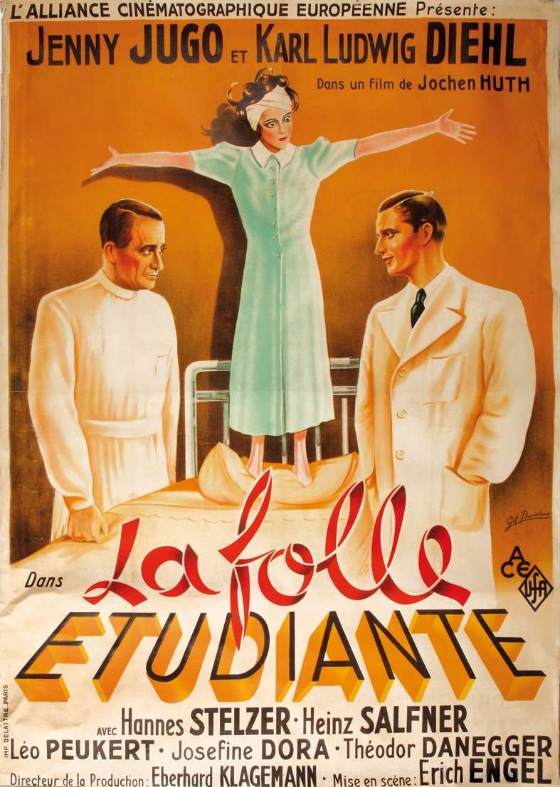 >Manifesto litografico intelato cm. 157x113, ben conservato. La Folle etudiante (Ein hoffnunglosser fall) di Erich Engel con Jean Jugo, Hans Stelzer e Leo Peukert.