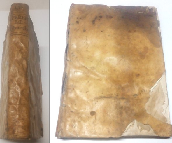 Madrid, por Don Antonio de Sancha, 1777. Folio; 4 hojas, 494 pp., 5 hojas. Impresión a dos columnas. Ejemplar afectado por la humedad, con pérdida de palabras en la parte superior de las primeras hojas y hasta la página 9, y desde la página 490 al final. Rastros antiguos de humedad en el tercio superior del libro. Encuadernación de época en pergamino, con pérdidas en el margen inferior y superior de los planos. Contiene, en paginación continuada a la obra de Herrera: Juan de Valverde Arrieta: Despertador que trata de la gran fertilidad, riquezas ., que España solia tener; Diego Gutierrez de Salinas: Discursos del Pan y del Vino. Reducido a sumario; Gonzalo de las Casas: Arte nuevo para criar Seda; Luis Méndez de Torres: Tratado de la cultivación y cura de las Colmenas, y Gregorio de los Ríos: Agricultura de Jardines. Primera y Segunda parte.