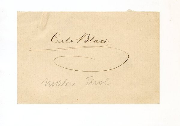 1 S. Qu.-8vo. Karl von Blaas studierte an der Akademie von Venedig und erzielt dort sowie in München und Wien erste Erfolge als Portraitmaler. "Für 'Moses auf dem Berg Sinai' stiftete ihm die Wiener Akademie einen fünfjährigen Studienaufenthalt in Rom, wo sich Blaas' Neigung zu religiösen Sujets im Verkehr mit den Nazarenern noch verstärkte. In der Folgezeit erhielt [er] von der kaiserlichen Familie und dem österreichisch-ungarischen und italienischen Hochadel zahlreiche Aufträge für Altargemälde, Kirchenfresken und Portraits" (DBE). - Die Verso-Seite mit kl. Registraturetikett, dem verschlungenen Monogrammstempel "LS" und hs. Numerierung "31".