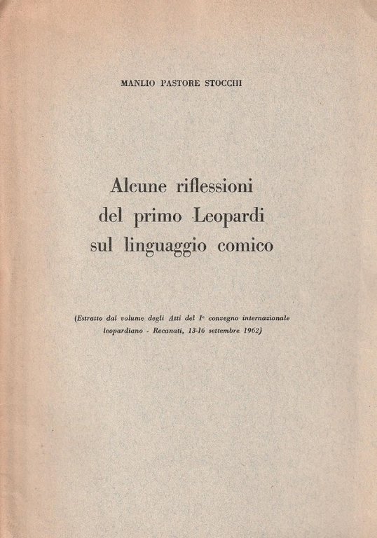 Alcune riflessioni del primo Leopardi sul linguaggio comico (Estratto dal volume degli Atti del 1^ convegno internazionale leopardiano . Recanati, 13-16 settembre 1962)