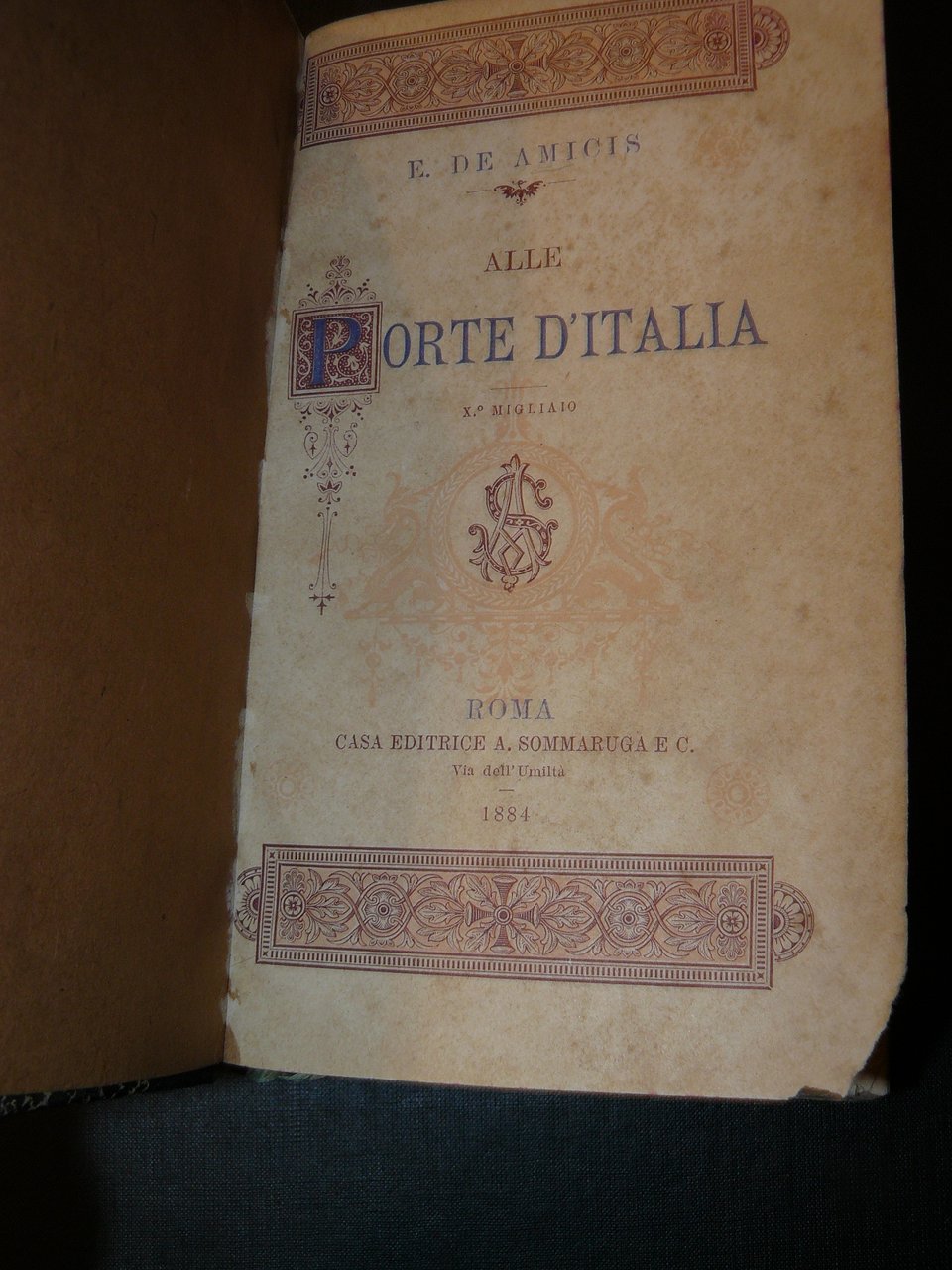 In-8°, pp. 422, (10 di indici e presentazione altre pubblicazioni), legatura in mezza pelle dell'epoca, titolo e fregi in oro al dorso. Pagina del titolo incollato il margine interno alla carta di guardia.