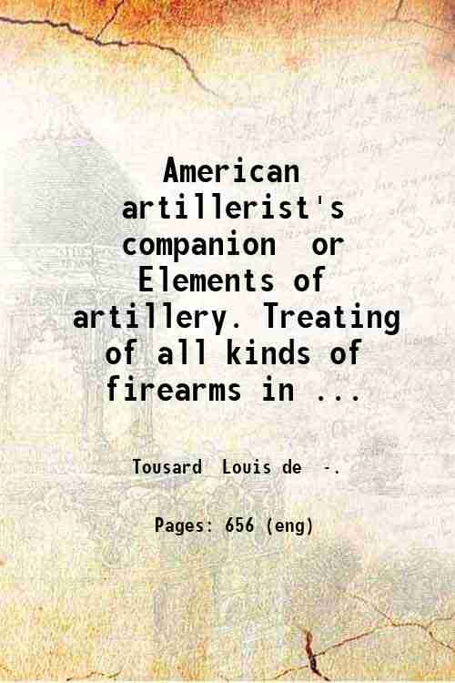 American artillerist's companion or Elements of artillery. Treating of all kinds of firearms in detail and of the formation object and service of the flying or horse artillery preceded by an introductory dissertation on cannon . By Louis de Tousard. v. 1. Volume 1 1809