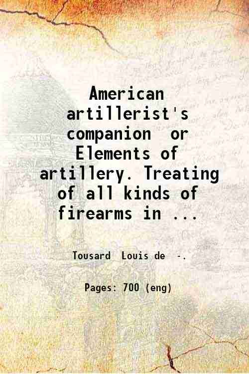 American artillerist's companion or Elements of artillery. Treating of all kinds of firearms in detail and of the formation object and service of the flying or horse artillery preceded by an introductory dissertation on cannon . By Louis de Tousard. v. 2. Volume 2 1809