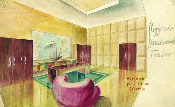 >Straordinario archivio di circa 1.100 progetti esecutivi. Bozzetti, in pochi casi datati, eseguiti tra gli anni Trenta e gli anni Sessanta del Novecento. Oltre mille progetti di varie dimensioni, da cm 15x30 a cm 40x 60, su supporto lucido o cartaceo, la maggior parte timbrati o firmati a lapis "Mario Steffenino", nel margine inferiore. Realizzati a matita, circa i ¾ con colorazione a pastello, con ritocchi di acquerello o tempera bianca. Gli ambienti vengono presentati con estrema cura e ricerca nei dettagli: dalla tappezzeria, al sistema di illuminazione, dai soprammobili ai tappeti ai quadri. La scelta dei colori dai toni caldi dal beige al tortora, dal blu al verde ottanio, rendono i bozzetti estremamente decorativi; soprattutto quelli realizzati su lucido, con ombreggiature e riflessi di luce, sono veramente notevoli. Le ambientazioni rivelano un gusto tipico degli anni a cavallo della seconda guerra mondiale con mobili ed arredi che vanno dal modernismo al razionale fino ai rifacimenti in stile del barocco e del rococò, ed esprimono un gusto, ed una committenza, assai variegati, ma di alto livello. Si possono identificare cinque divisioni rilevanti: -Ingressi e corridoi: 125 fogli sciolti (una quarantina su lucido), raffiguranti porte, mobili a scomparsa, trompe-l'oeil, specchiere, studi per colonne, cassettiere, mobili, vetrinette. Ampi ingressi, con grandi lampadari in cristallo, specchiere, arazzi o dipinti con scene essenziali o mitologiche e pannelli degli armadi decorati con motivi classici. -Camere da letto e bagni: 176 fogli (78 su lucido) con specchi, toilettes e pettineuse, sanitari, letti singoli e matrimoniali, camerette per bambini, armadi e tappeti. Accanto ad uno stile più classico adottato generalmente per le case di città, si riscontra un gusto più essenziale ed in sintonia con la natura, per la scelta dei materiali, soprattutto per gli chalet di montagna, probabilmente ispirato alle scelte in voga nel periodo tra gli architetti d'interni torinesi, primo fra tutti Carlo Mollino. Interessante il fatto che compaiano i nomi di alcune delle famiglie per cui questi progetti vennero ideati: Görlich editore di Milano, Siguillasco, Gastaldi, Monferrini, Gaudio, Remmert, Testa, Stroppani, Garbelli... Le ambientazioni delle camere da letto sono particolarmente ricercate, anche per l'utilizzo di una carta di grammatura superiore; notevoli i rialzi in bianco che danno risalto ai tessuti ed alle decorazioni delle testate dei letti. -Saloni, cucine, camere da pranzo: 375 fogli (circa 120 su lucido). Particolarmente interessanti gli studi per i camini, mobili bar e la schematica realizzazione di poltrone, sedie, divani. Anche in questo caso si affiancano stili differenti, indice non solo del passare degli anni ma anche del radicale cambio della moda e dei gusti. Accanto a sale da pranzo tradizionali, si trova la curiosa "serie in scatola", cucine e tavoli d'avanguardia. Tra i committenti si identificano i nomi di alcune famiglie, torinesi e non: Librizzi, Randazzo, Truccato, Negri, Gemelli... Il successo dello Studio Steffenino doveva essere notevole, se, come sembra, realizzò anche un progetto per un appartamento a Buenos Aires. -Uffici e studi: 90 fogli (oltre 30 su lucido) raffiguranti scrivanie, tavoli, sedie, uffici, sale riunioni e sale d'aspetto, ambientazioni di studi per avvocati, direttori generali, con dettagli su librerie e cassettiere. Le linee vanno dallo stile più classico degli anni Quaranta fino a quello più lineare ed essenziale degli anni Settanta. – Negozi: 290 fogli (140 ca. su lucido). Viste prospettiche e interni di negozi di tutti i generi: tessuti, profumerie, tabaccherie, gioiellerie, abbigliamento, camicerie, farmacie, pasticcerie, bar, ristoranti, librerie. Dettagli per vetrine, banconi, sale prova, insegne. Interessante documentazione della vecchia Torino, testimoniata da grandi nomi quali: Galup, Reiteri, Gaidano, Gorra, la Friulana, Colombino, Pivano... L'archivio comprende anche 35 fogl