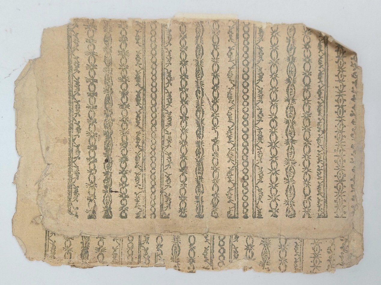Carta settecentesca con motivi ornamentali.