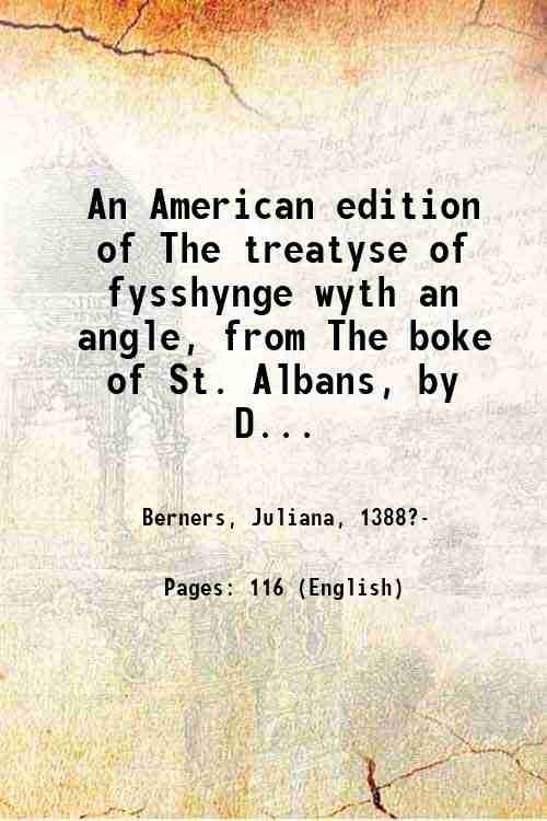 An American edition of The treatyse of fysshynge wyth an angle, from The boke of St. Albans, by Dame Juliana Berners, A.D. 1496. Ed. by Geo. W. Van Siclen, A.D. 1875. 1875