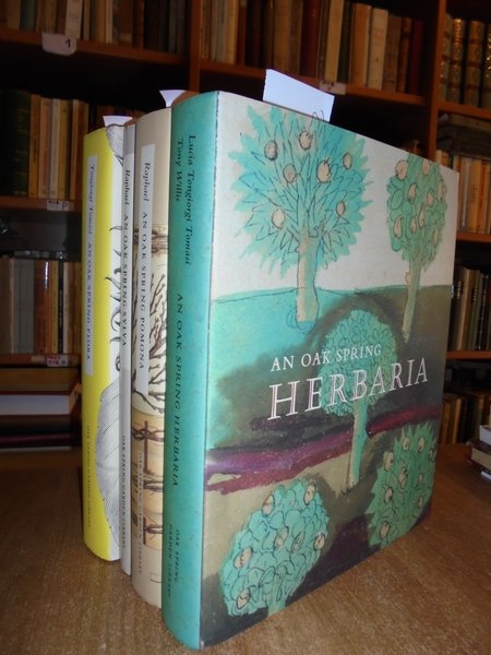 LUCIA TONGIORGI TOMASI & TNY WILLIS. Upperville Virginia,Yale University Press, 2009. An Oak Spring Herbaria - Herbs and Herbals from the Fourteenth to Nineteenth Centuries: A Selection of Rare Books, Manuscripts, and Works of (Oak Spring Garden Foundation). HERBARIA. POMONA. FLORA. SYLVA. 4 volumi in-4°, seta edit. con fregi in oro ai piani anteriori, titoli al dorso con sovracopertine. lviii, 394 pp. con numerose riproduzioni la maggior parte a colori nel a colori nel testo.; xxxiii, (iii). 276 pp. con numerose illustrazioni nel testo.; lxxiii, 427 pp. con bellissime illustrazioni a colori nel testo.; xxvii, 147 pp. con numerose illustrazioni la maggior parte a colori nel testo. This magnificent compendium is the fourth in a series of catalogues describing selections of rare books and other material in the Oak Spring Garden Library, a collection assembled by Mrs. Rachel "Bunny" Lambert Mellon. Herbaria describes sixty-three books and manuscripts about herbs and includes exquisite illustrations selected from the works themselves. Spanning the fourteenth to nineteenth centuries, and featuring works by Brunfels, Culpeper, Monardes, and Linnaeus, among others, this authoritative catalogue will prove.