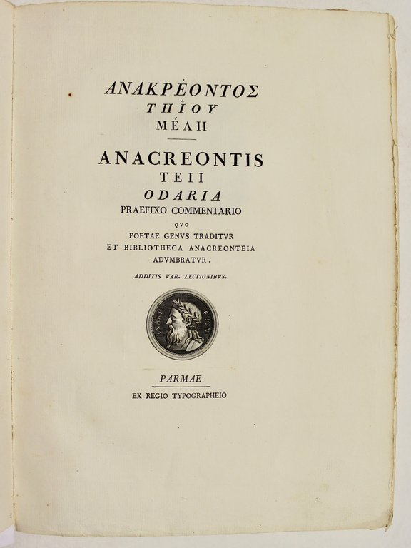 Anacreontis Teii Odaria praefixo commentario quo poetae genus traditur. (testo greco e latino).
