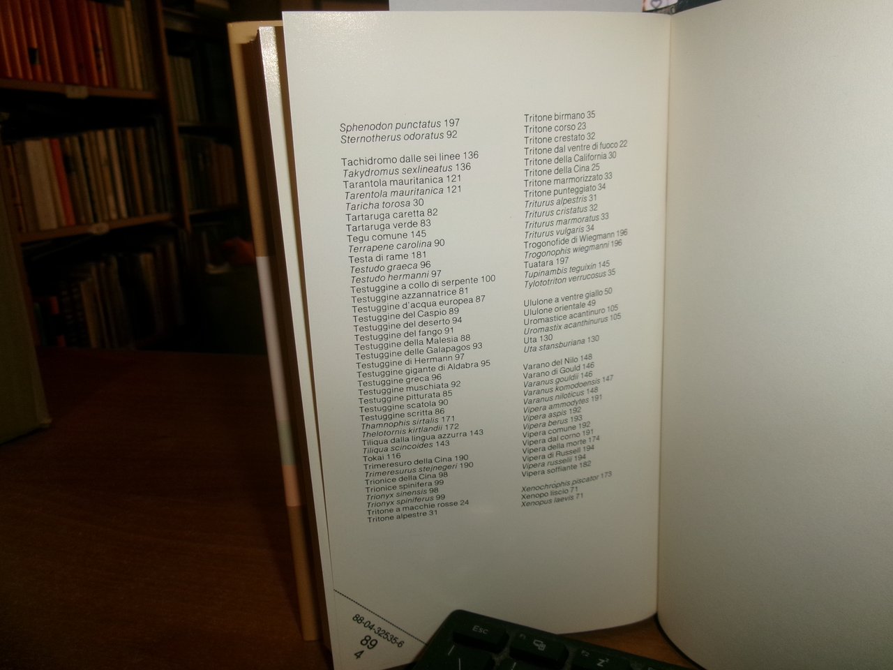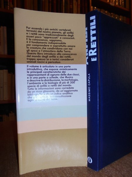 Massimo, Capula. Milano, Arnoldo Mondadori, 1989. Anfibi e Rettili. In-16° grande, similpelle con sovracopertina. 255, (1) pp. con numerose fotografie a colori nel testo di Giuseppe Mazza. Come nuovo. Neg. viaggi