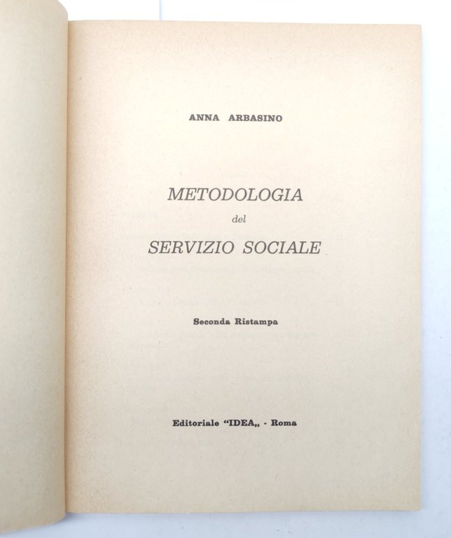 Anna Arbasino Metodologia del servizio sociale 2ª ristampa Editoriale Idea (senza data)