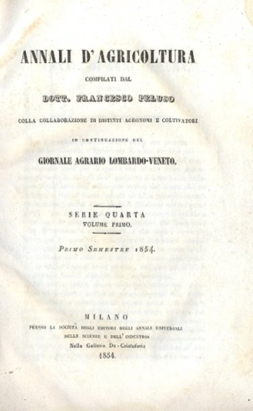 Annali d'agricoltura. In continuazione del Giornale Agrario Lombardo - Veneto.
