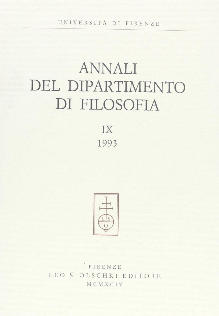 Annali del Dipartimento di filosofia, Università di Firenze. Vol. 9 | Rare and modern books |