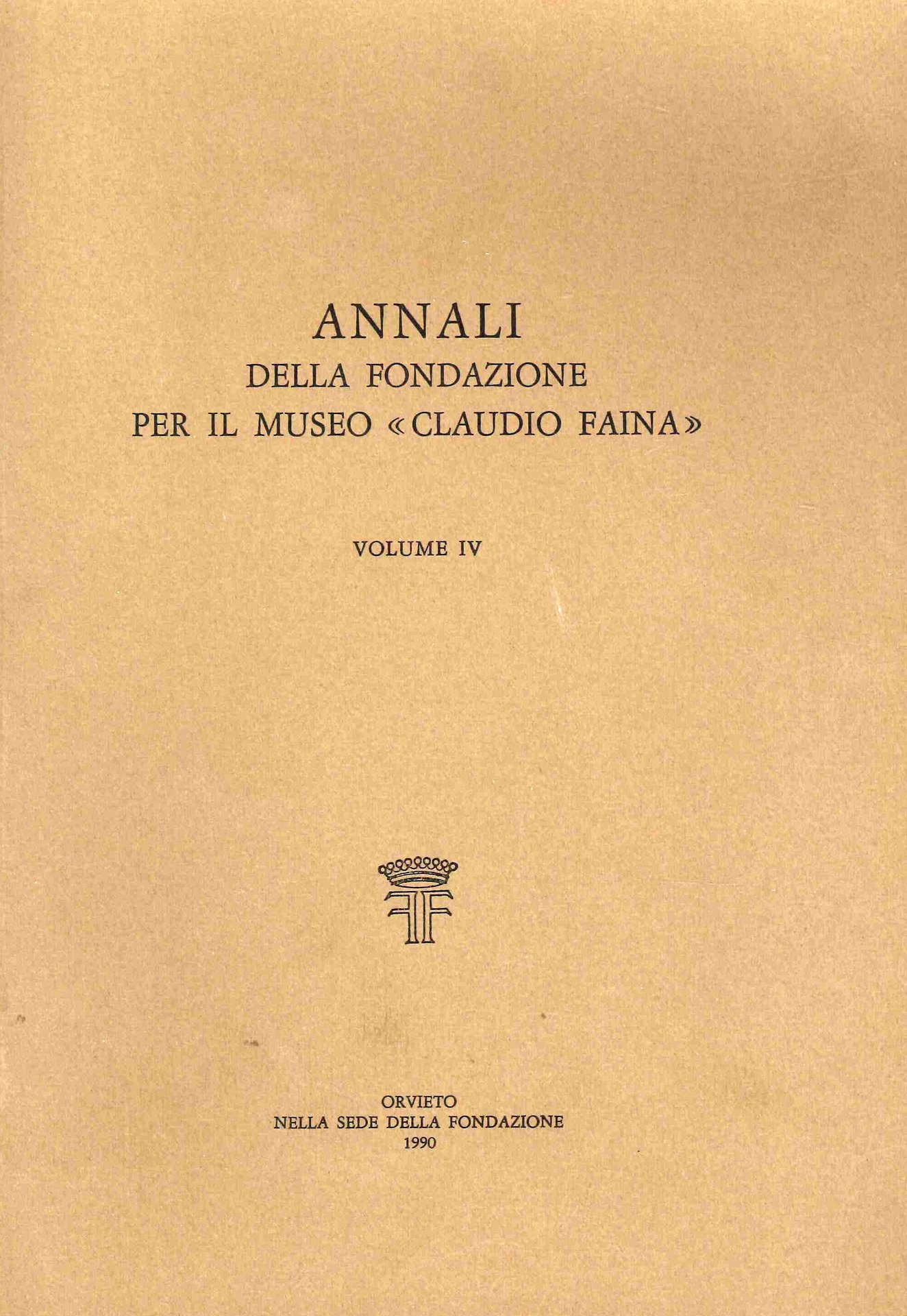 Roma, 1990; br., pp. 256, 49 ill. b/n, tavv., cm 17x24,5. (Annali della Fondazione per il Museo "Claudio Faina". 4).