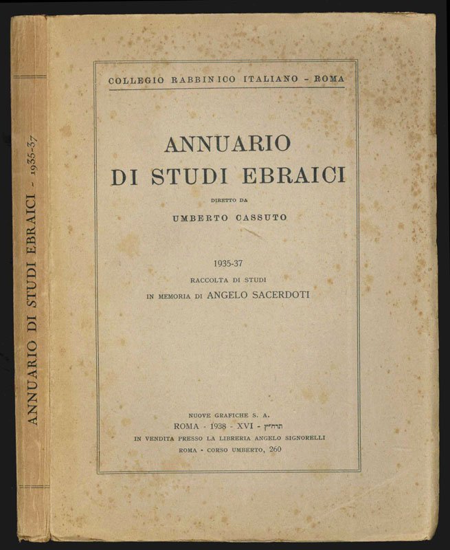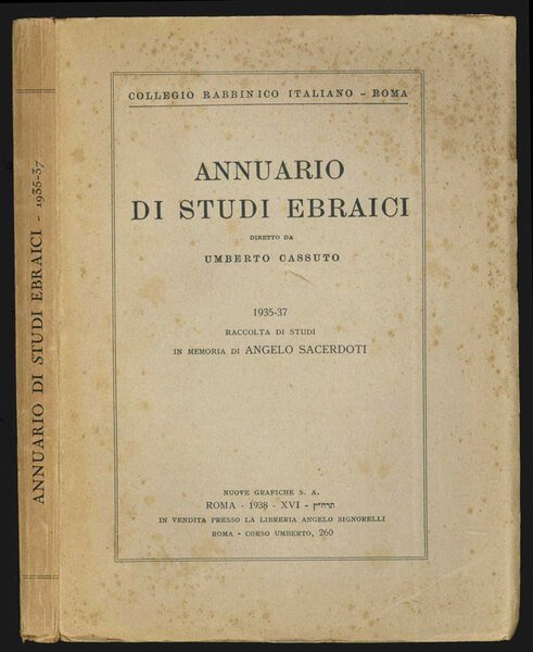 Annuario di studi ebraici diretto da Umberto Cassuto. 1935-37. Raccolta di Studi in memoria di Angelo Sacerdoti