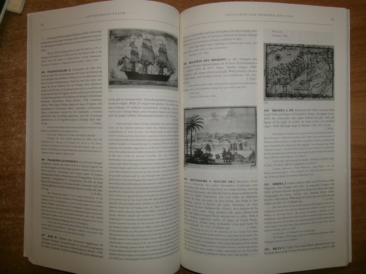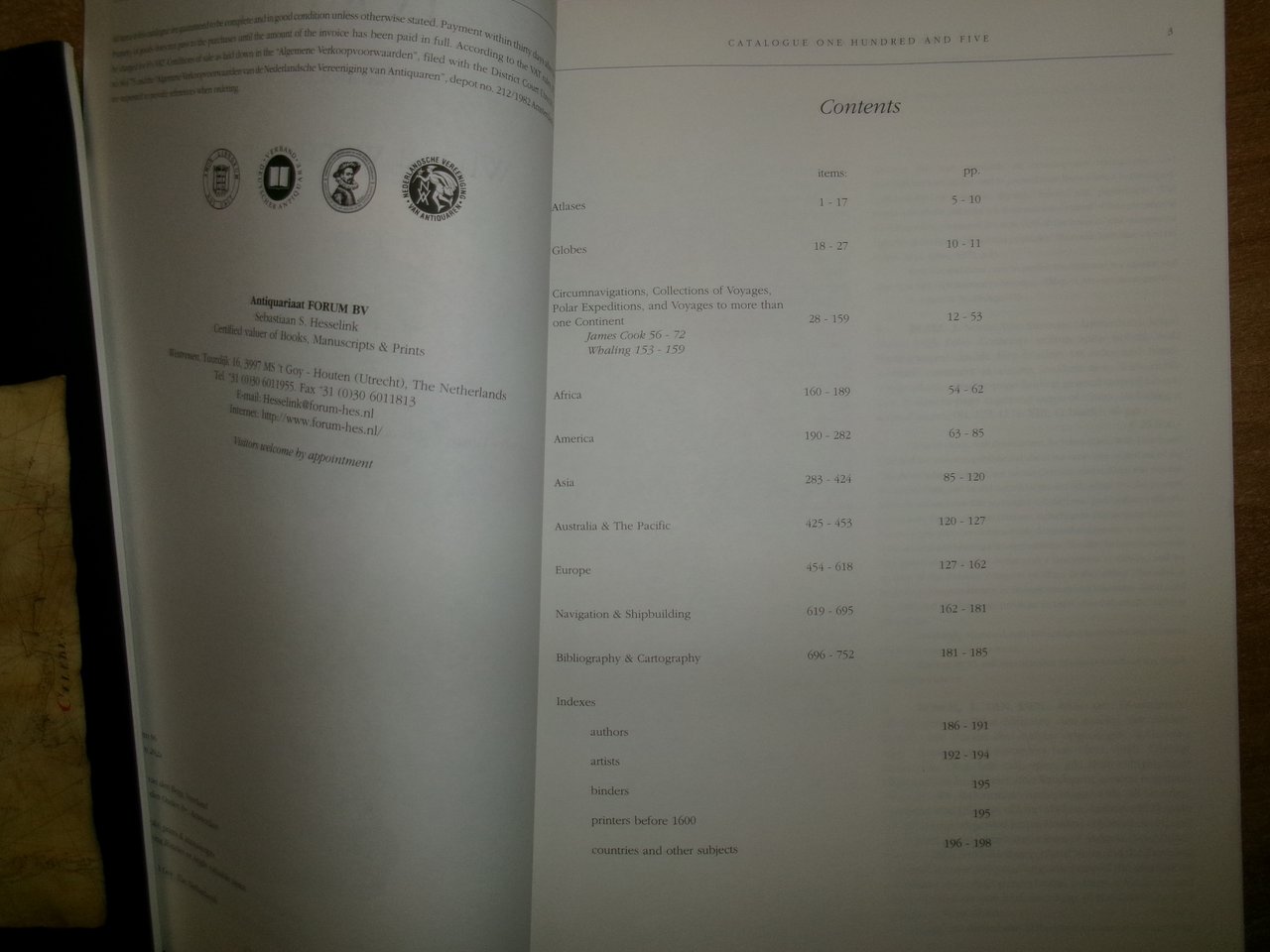 ANTIQUARIAAT FORUM. Catalogue 105/101. What a Wonderful World. The Netherlands, 1998. Manuscripts - Voyages - Discoveries - Atlases - Natural History - Architecture & Gardens - Navigation & related fields... In-4°, cart. edit. ill. a col. 200 pp.; 48 pp. con numerose illustrazioni fac-simili anche a colori n.t. Ottimo stato con testi in inglese e prezzi. Neg. mob. E