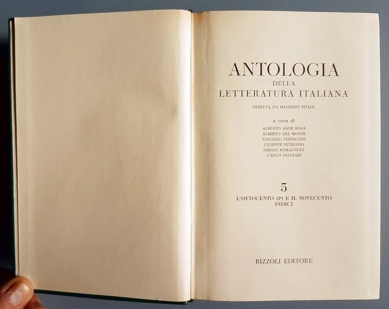 Antologia Della Letteratura Italiana (Vol. 5.) L'Ottocento (2,) E Il Novecento Indici