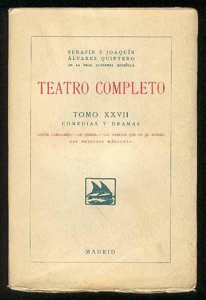 Madrid: Sociedad General Española de Librería (Imp. Clásica Española), 1928.- 285 p., [7 h.]; 8º mayor (19,2 x 12,8 cm); Sin desbarbar; Rústica Ed.- (TEATRO COMPLETO. Tomo XXVII. Comedias y Dramas).* TEATRO ESPAÑOL DE LOS SIGLOS XIX-XXI