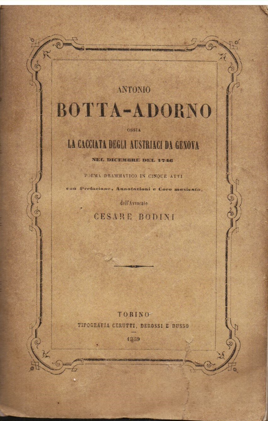 Antonio Botta-Adorno ossia la cacciata degli austriaci da Genova nel dicembre del 1746. Poema drammatico in cinque atti
