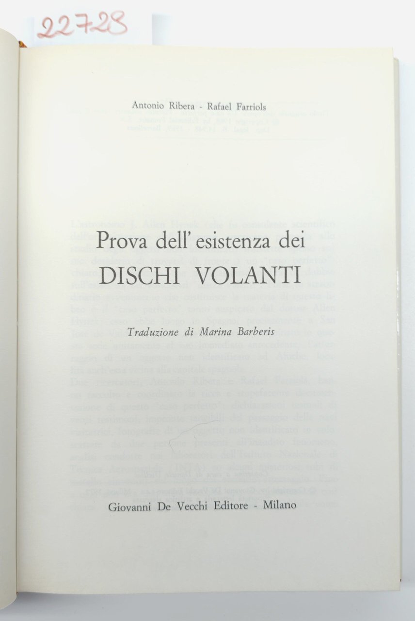 Antonio Rivera, Raphael Farriols, Prova dell'esistenza dei dischi volanti De Vecchi 1972