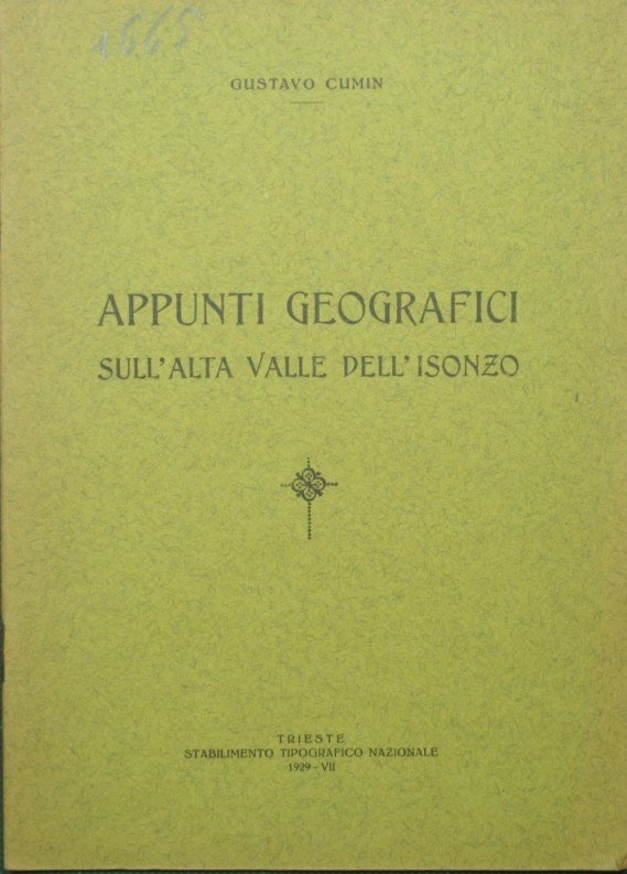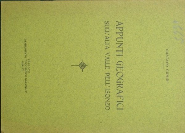 Appunti geografici sull'alta Valle dell'Isonzo | Rare and modern books | Cumin Gustavo