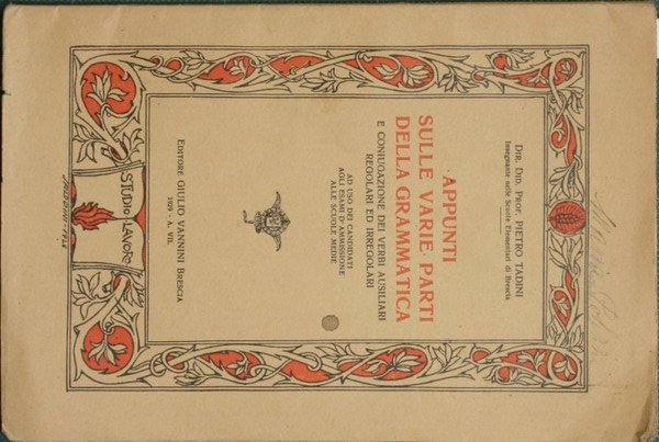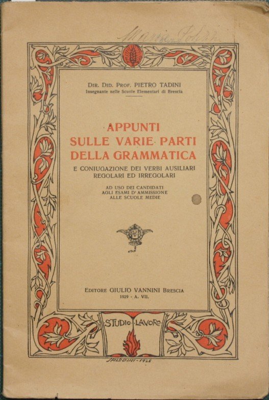 Appunti sulle varie parti della grammatica | Rare and modern books | Tadini Pietro