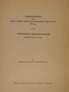 Archäologischen Anzeiger 1971. JAHRESBERICHT DES DEUTSCHEN ARCHÄOLOGISCHEN INSTITUTS FÜR 1970 UND VERZEICHNIS DER MITGLIEDER STAND VOM 30.9.1971.