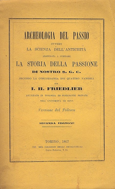 Archeologia del Passio ovvero la scienza dell' antichità adoperata a spiegare la storia della Passione di Nostro S. G. C. secondo la concordanza dei quattro Vangeli. Seconda edizione