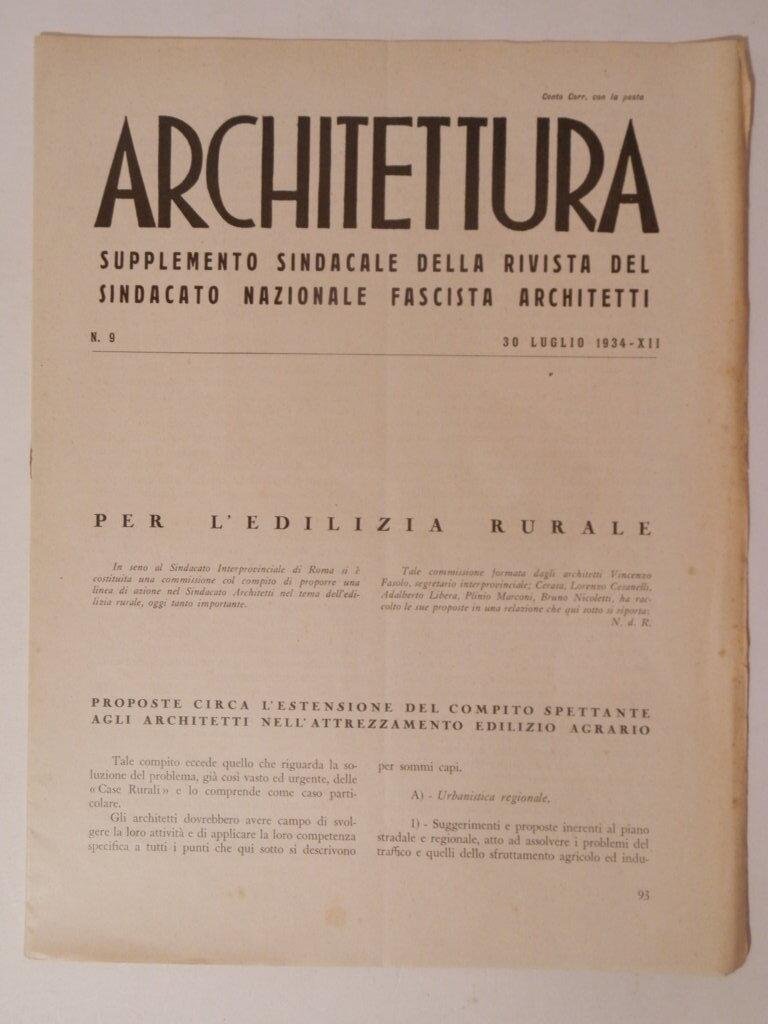 Architettura. Supplemento sindacale della rivista del sindacato nazionale fascista architetti 30 luglio 1934