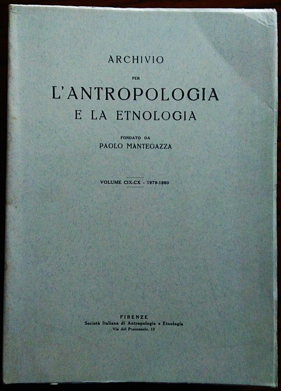 Archivio per l'antropologia e la etnologia fondato da Paolo Mantegazza. Volume CIX-CX, 1979-1980 | Rare and modern books |