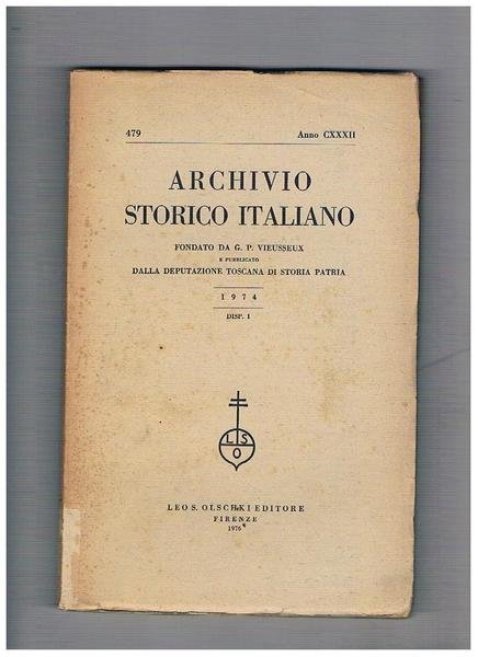 Archivio storico italiano, trimestrale fondato da G. P. Viesseux. Anno 1974 disp. n° 1. Contiene: i Medici in esilio: una vittoria di famiglia ed una disfatta personale; istruzione per una ambasciata aquilana del sec. XV alla corte di Ferante I°; ecc.